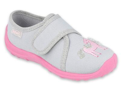 Krásné dívčí textilní přezůvky Befado ve světle šedém provedení s vyšitým jednorožcem. Prodyšná,…