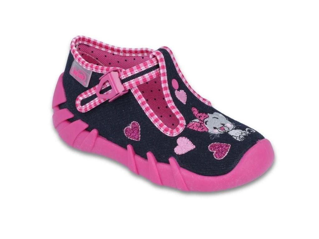 Bačkůrky, které odpovídají veškerým nárokům kladeným na zdravé a pohodlné obutí doma i ve školce. Vyrobené z vysoce kvalitních přírodních a prodyšných látek. Vyztužená zadní část boty stabilizuje patu. Nízký klínovitý podpatek. Širší špičky bot jsou vhodné pro volný pohyb prstíčků a také chrání botu před odřením. Lehká a pružná a protiskluzová podrážka usnadňující chůzi a běh, která působí i proti únavě nožiček dětí. Odvětraná podrážka zajišťuje odvod nadměrné vlhkosti a prodyšnost boty a tím pohodlí pro celodenní nošení doma i ve školce. Zapínání na přezku umožní praktické a pohodlné obouvání.
