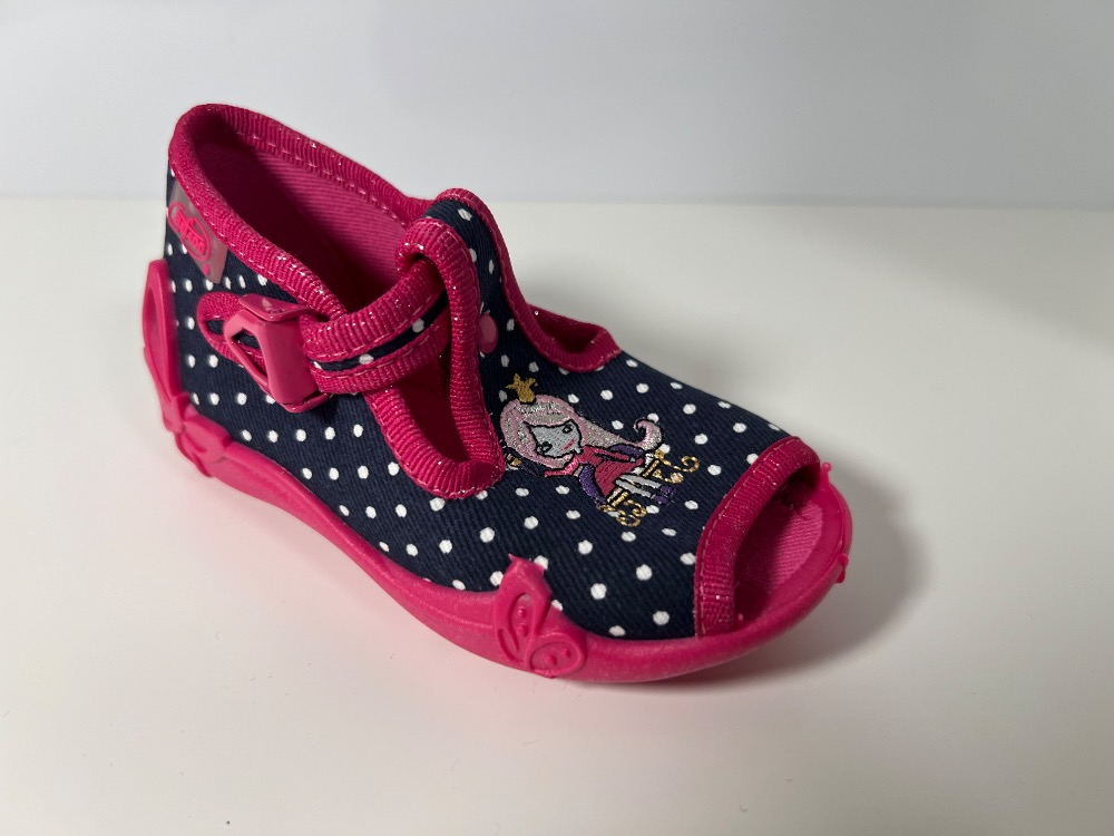 Bačkůrky, které odpovídají veškerým nárokům kladeným na zdravé a pohodlné obutí doma i ve školce. Vyrobeno z vysoce kvalitních přírodních a prodyšných látek. Vyztužená zadní část boty stabilizuje patu. Nízký klínovitý podpatek a široké špičky bot jsou vhodné pro volný pohyb prstíčků. Podrážka Flexi-B - dýchající protiskluzová a ohebná podrážka. Lehká, pružná a protiskluzová podrážka usnadňující chůzi a běh, která působí i proti únavě nožiček dětí. Odvětraná podrážka zajišťuje odvod nadměrné vlhkosti a prodyšnost boty a tím pohodlí pro celodenní nošení doma i ve školce. Zapínání na přezku umožní praktické a pohodlné obouvání.