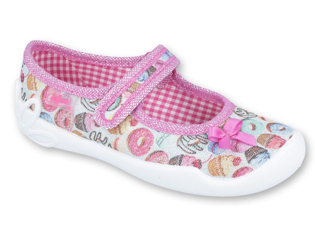 Dívčí bačkorky Befado Blanca 114X... mají lehkou, pružnou, odvětranou podrážku, pevnou, vyztuženou patu a dostatečně širokou špičku.