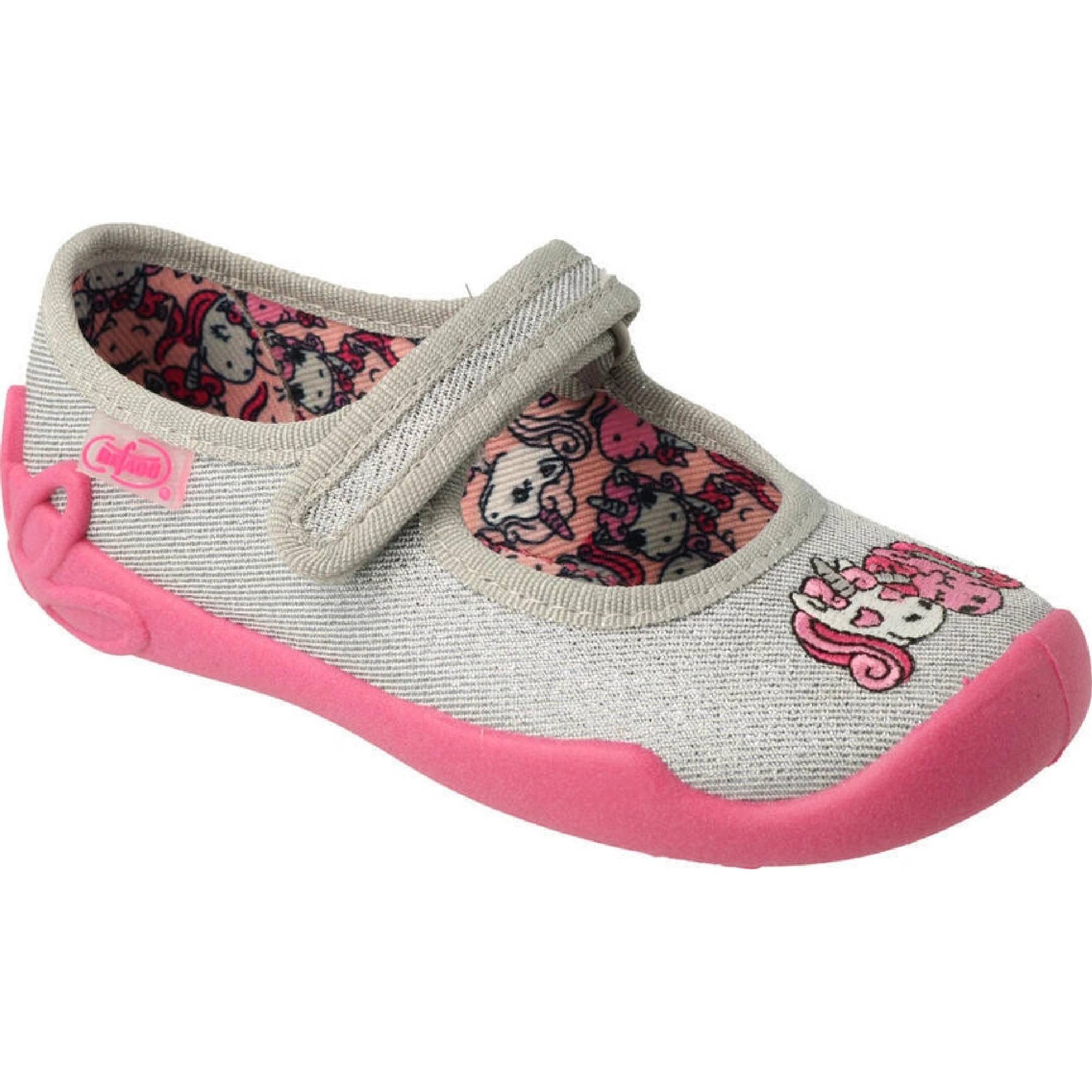 Dívčí bačkorky Befado Blanca 114X... mají lehkou, pružnou, odvětranou podrážku, pevnou, vyztuženou patu a dostatečně širokou špičku.