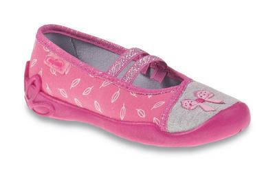 Dívčí balerínky, které odpovídají veškerým nárokům kladeným na zdravé a pohodlné obutí doma i ve školce. Vyrobené z vysoce kvalitních přírodních a prodyšných látek. Vyztužená zadní část boty stabilizuje patu. Nízký klínovitý podpatek a měkká a elastická stélka. Širší špičky bot jsou vhodné pro volný pohyb prstíčků a také chrání botu před odřením. Lehká, pružná a protiskluzová podrážka usnadňující chůzi a běh, která působí i proti únavě nožiček dětí. Odvětraná podrážka zajišťuje odvod nadměrné vlhkosti a prodyšnost boty a tím pohodlí pro celodenní nošení doma i ve školce. Na nártu jsou gumičky, díky kterému se bota přizpůsobí výšce nártu a tvaru chodidla a zároveň umožní praktické a pohodlné obouvání.