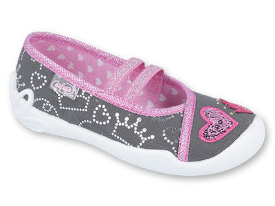 Dívčí balerínky, které odpovídají veškerým nárokům kladeným na zdravé a pohodlné obutí doma i ve školce. Vyrobené z vysoce kvalitních přírodních a prodyšných látek. Vyztužená zadní část boty stabilizuje patu. Nízký klínovitý podpatek a měkká a elastická stélka. Širší špičky bot jsou vhodné pro volný pohyb prstíčků a také chrání botu před odřením. Lehká, pružná a protiskluzová podrážka usnadňující chůzi a běh, která působí i proti únavě nožiček dětí. Odvětraná podrážka zajišťuje odvod nadměrné vlhkosti a prodyšnost boty a tím pohodlí pro celodenní nošení doma i ve školce. Na nártu jsou gumičky, díky kterému se bota přizpůsobí výšce nártu a tvaru chodidla a zároveň umožní praktické a pohodlné obouvání.
